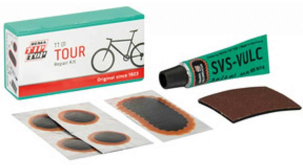 De Tip Top reparatieset is dé ultieme fietsreparatieset. Dit merk, met zijn zwart-rode logo en kenmerkende reparatiepatches, bestaat al sinds 1937. Deze patches vormen samen met de vulkanisatievloeistof (SVS-oplossing) een systeem waarbij de patches permanent aan de binnenband vastzitten. Het is luchtdicht!